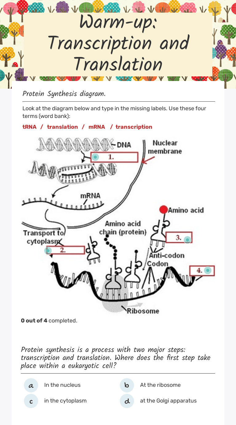 Translation Practice Worksheet Biology / Protein Synthesis Interactive Review Worksheet. Test your knowledge on the process of translation! Translate the mrna codons and find the correct amino acid using the codon table The end of the trna .